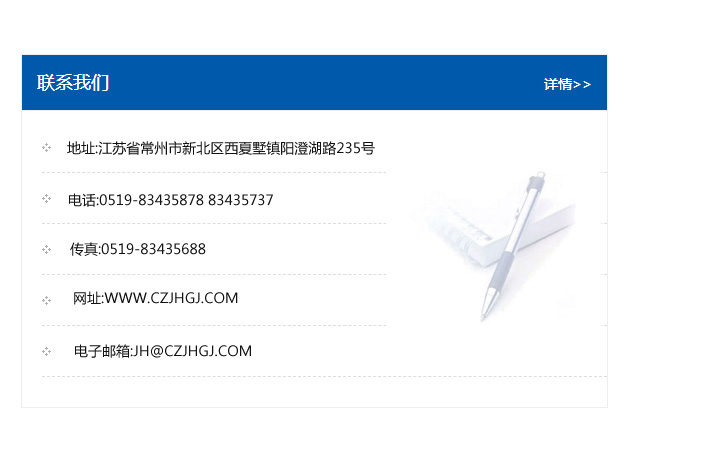 地址:常州市新北區友邦商務大廈1幢16、17層  電話:0519-85101652  傳真:0519-85112595  郵編:213022  網址:www_cz-jiayue_cn.xianyihai.com  郵箱:xiajifengaa@163.com